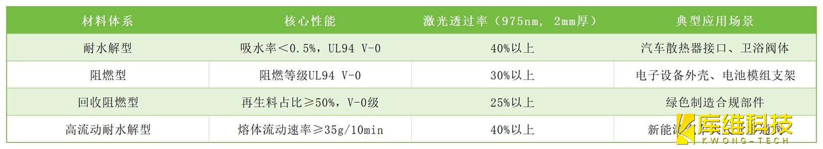 激光透射焊接的核心瓶頸在于??透光層材料的光學性能與功能性平衡??。傳統(tǒng)PA66-GF30材料雖具備優(yōu)異力學性能,但其激光透過率受玻纖分散性、吸濕性影響,難以滿足復雜工況需求。通過配方創(chuàng)新與工藝優(yōu)化,構建了多維度材料解決方案: